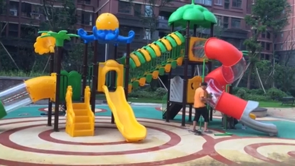 :1.组合滑梯 2.塑胶地板